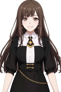 (masterpiece:1.3),(the best quality:1.2),(super fine illustrations:1.2),(Masterpiece),high quality,high detail,(white background:1.2),looking at viewer,(SOLO:1.4),outline,simple background,upper body, cowboy shot,looking at viewer,(((arms at side))),  mana, 1girl, long hair, smile, brown hair, bangs<lora:mana-pony:0.8>