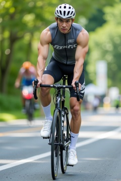 Character:1man,solo,asian,muscular,handsome,Bicycle athlete,riding.