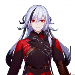 (((arms at side))), grin,low ponytail,blanket,belt,silver hair,low,tied long hair,messy hair,two,tone hair,streaked hair,jewelry,leather,long hair,bandages,white hair,black hair,red eyes,red rope,red legwear,fu hua,hakama,armor,brown footwear,high heel boots,jacket,dress,toeless legwear,arm wrap,sarashi,high heels,gradient hair,long sleeves,multicolored hair,braid,gloves,pants,earrings,1girl,bangs,closed mouth,expressionless,hair between eyes,hair ornament,long hair