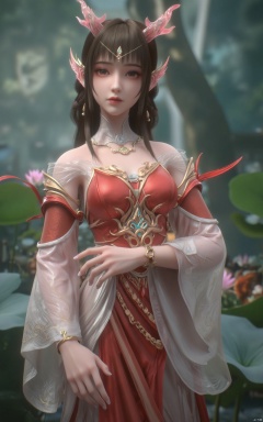 masterpiece,(best quality),official art, (1girl), (solo), ((looking_at_viewer)),(huge breasts:2.39),(full breasts:1.99),Xzhaoliner,(Lotus pond, lotus:1.52),Xruoshui,Xlongnv,Xbaiyijun,XyunluoH,XyunluoX,Xyiwenjun