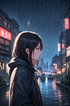 score_9,  best quality,1girl,city,rain,expressionless,from side,night,illumination