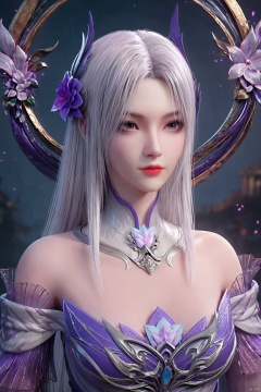 score_9,score_8_up,(Clear lines, high definition, Best quality, Very detailed, masterpiece, 4K),1girl, solo, long hair, hair ornament, dress, bare shoulders, upper body, flower, white hair, detached collar, red lips,XYX