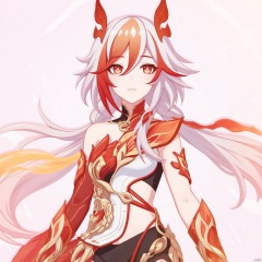 fu hua bengluo,fu hua,messy hair,jewelry,twintails,eyelashes,facial mark,head wings,two-tone hair,twintails,tattoo,ribbon,bangs,white hair,orange eyes,streaked hair,orange hair,fiery hair,hair between eyes,multicolored hair,hair ornament,hair ribbon,pattern on hair,yellow pupils,diamond shaped pupils,