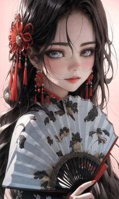 (Masterpiece),(best quality),((masterpiece)),(highres), (original:1.8), (extremely detailed 8K wallpaper), overexposure,1girl, close-up, (fan:1.1),A huge fan, cheongsam,<lora:绪儿-扇子fan:1>