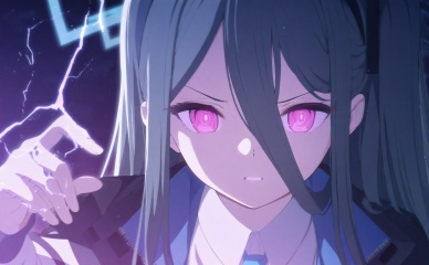 masterpiece,best quality,high quality,loli,1girl, aris (blue archive), halo, solo, shirt, necktie, long hair, black hair, white shirt, blue necktie, jacket, collared shirt, red eyes, hair between eyes, ringed eyes, glowing, black hairband, looking at viewer, glowing eyes, long sleeves, portrait, pink eyes, hairband, parted lips, one side up, electricity, school uniform, bright pupils, white pupils, very long hair,<lora:BA3——【Illustrious】hans:0.88>,
