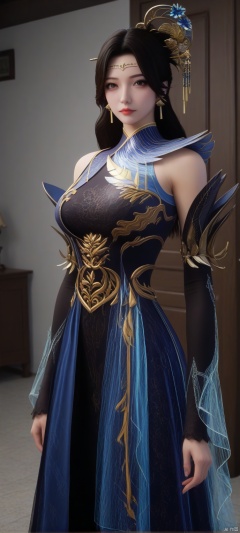 (high definition, Best quality, masterpiece, 4K, exquisite skin), 1girl, solo, breasts, looking at viewer, in room, turn round