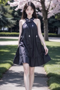 realistic,photo,masterpiece,highest quality,exquisite details,amazing art,realistic details,pretty face,real skin,8K,RAW,movie lighting,soft light,shallow depth of field,bokeh,dreamy,1girl,huge breasts,long hair,black hair,standing,full body,(solo,lakeside,in spring,park),<lora:add_detail:0.5>,<lora:VeryLongLegs_v2:0.4>,very_long_legs,<lora:ENNE 黑色无袖连衣裙_v09:1>,sleeveless dress,