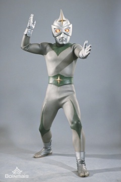 Mirrorman,ultraman,silver bodysuit,silver gloves,legwear,gloves,boots,cover,mask,plugsuit,armor,bodysuit,green pattern on body,silver tight-fitting,silver footwear,helmet,leather suit,latex,tokusatsu,no humans,science fiction,silver head,hard mask,no smile,no eyes,no nose,solo,silver rubber bodysuit with green line