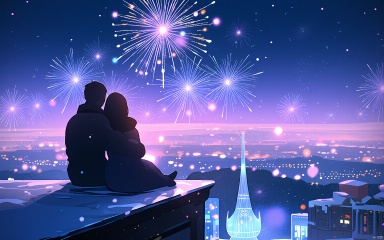 HCCH, On a snowy rooftop, couples hug close, their breaths visible in the frosty air. They gaze at the city below, illuminated by strings of fairy lights and the occasional burst of fireworks. The soft snowflakes gently fall, adding a serene beauty to the romantic scene as they celebrate the turn of the year with promises of love and hope.