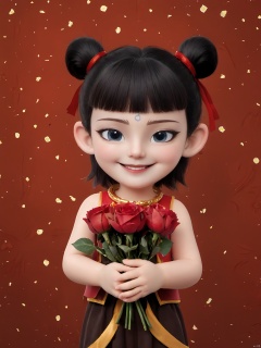 LZNZ,1boy, smile,Holding a bouquet of roses,Romantic Valentine's Day Background