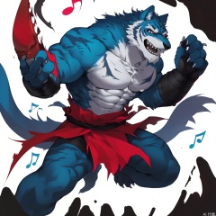 The image depicts a stylized, anthropomorphic wolf-like creature with sharp, angular features and a fierce expression. The creature has white fur with darker, jagged edges, and its eyes are narrowed in a fierce gaze. It is holding a set of spherical objects that appear to be musical instruments, possibly drums or maracas, with pink and purple accents. The background is dark, which contrasts with the vibrant colors of the creature and the instruments. The overall scene has a dynamic and intense atmosphere, suggesting a moment of action or performance.character:PangSP,tiger boy,furry