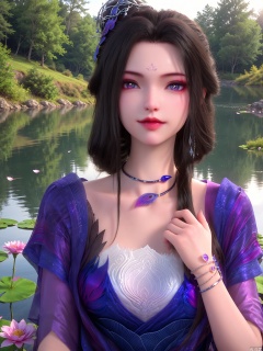 score_9,score_8_up,score_7_up,1girl,looking_at_viewer,realistic,1girl,Vivid Colors,bright environment,sunshine,god light,lake,delicate water surface,shiny skin,shiny hair,reflection,(wariza:1.2),dress,jewelry,flower sea,falling petals,extreme detail description,bright sunlight,bright_pupils,frontal lighting,(upper body:0.5),put one hand on your chest