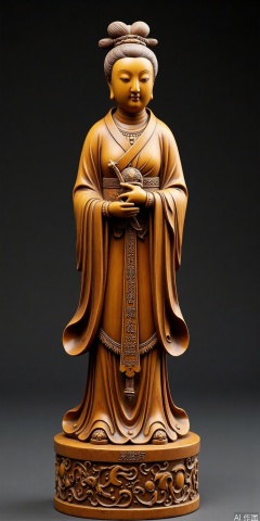 The round carving craftsmanship statue of the ladies, the folds of the sleeves are naturally and smooth, and the base is engraved with_Fu Shou and An Kang_Seal script, and the hand-chief marks are retained in part, and the warm and antique patina effect is