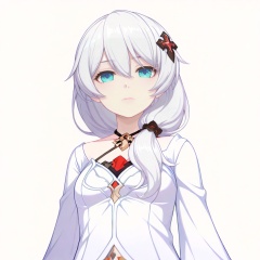 masterpiece, best quality,(white background:1.2),looking at viewer,SOLO,simple background  game_cg_style,theresa apocalypse,white hair,eyebrows visible through hair,blue eyes,silver hair,low-tied long hair,hair between eyes,bangs,<lora:德丽莎-ILL:0.8>