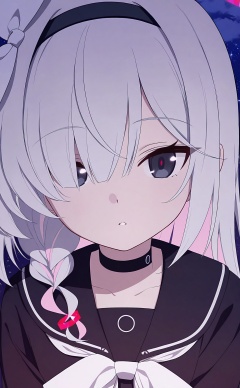 masterpiece,best quality,high quality,loli,1girl,plana (blue archive),solo,sky,hairband,hair over one eye,choker,black hairband,black eyes,long hair,colored inner hair,black choker,sailor collar,multicolored hair,braid,black sailor collar,star (sky),pink hair,serafuku,school uniform,red pupils,single braid,cloud,white hair,starry sky,night sky,looking at viewer,white ribbon,night,parted lips,portrait,cloudy sky,outdoors,side braid,white bow,ribbon,two-tone hair,black serafuku,grey hair,collarbone,hair ribbon,//,<lora:BA——【noob】hans:1>,