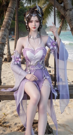 SSFW,(masterpiece:1.2),best quality,absurdres,masterpiece,original,extremely detailed wallpaper,perfect lighting,Golden sandy beach covered with vibrant flowers, turquoise waves gently lapping the shore, elegant woman in embroidered qipao swinging on a wooden swing under coconut trees, bright flower clusters spreading from sand to palm tree roots, soft natural light filtering through coconut leaves, ocean breeze lifting hair and qipao hem, high-resolution details showcasing petal textures and silk fabric sheen, ultra-wide angle lens capturing coastline panorama, cinematic color grading with soft focus on the central figure,(huge breasts:2.99),(full breasts:2.99),Xanmiaoyi,Xyunwangshu,XlishaoyinY,Xbaixue,XanmiaoyiY,Xxiuqiuhua,XbaiyuerongY