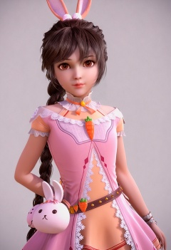 score_9,high detail,best quality,shiny skin,shiny,xiaowuyn,1girl,solo,brown eyes,dress,rabbit ears,single braid,pink dress,white background,brown hair,belt,carrot,long hair,breasts,choker,jewelry,realistic,hair ornament,bag,simple background,looking_at_viewer,cowboy shot,<lora:QQSponyxiaowuynV1:0.8>,<lora:Pony_DetailV2.0:0.8>,<lora:皮肤凹痕:0.1>,