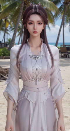 (masterpiece:1.2),best quality,absurdres,masterpiece,original,extremely detailed wallpaper,perfect lighting,Golden sandy beach covered with vibrant flowers, turquoise waves gently lapping the shore, , bright flower clusters spreading from sand to palm tree roots, soft natural light filtering through coconut leaves, ocean breeze lifting hair and qipao hem, high-resolution details showcasing petal textures and silk fabric sheen, ultra-wide angle lens capturing coastline panorama, cinematic color grading with soft focus on the central figure,(huge breasts:2.99),(full breasts:2.99),XshengcaierY,Xmengyuyi,Xxiaomei,Xgufenghuaqiang
