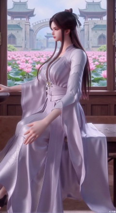 (masterpiece, best quality:1.2),1girl, solo, long dress,Ancient princess's boudoir with bright color palette,,(huge breasts:2.59),(full breasts:2.39), Hanfu-clad maiden sitting by latticed window desk in romantic daydreaming posture, classical Chinese garden through window showcasing lotus pond filled with blooming pink and white lotuses, delicate ink-wash painting style, interior featuring rosewood furniture with mother-of-pearl inlay, silk curtains fluttering in breeze, porcelain stationery set on desk, distant view of curved bridges and pavilions in garden, ultra HD rendering with crisp details on embroidered garments and translucent lotus petals,,(huge breasts:2.99),(full breasts:2.99),,Xzhihua,Xsiyouyou,Xyanruyu,Xmoxiaonan,Xyeqingxian,Xyinxuehou,Xpoyuhou,XbaihehuaiX,Xjiangbilan,Xhuajin,XshengcaierY,Xmengyuyi,Xxiaomei