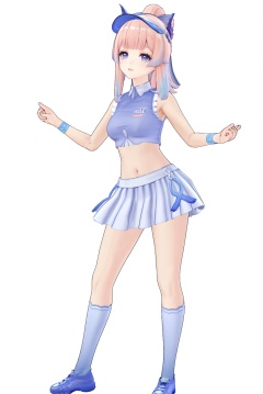 8k,best quality,masterpiece,(ultra-detailed),(high detailed skin),(by nanoless, by misumi \(macaroni\),:0.5),A full-body portrait of a young girl,standing gracefully,pastel art style,high-key lighting,shoujo manga influence,hd quality,delicate details,full body,full shot,standing,looking at viewer,(solo:1.2),simple background,(white background:1.2),<lora:xinhai_new-sd-Tanger-000018:0.8>,Sangonomiya Kokomi /\(maidong/\),clothes: maidong sportswear,maidong sun visor,1girl,sangonomiya kokomi,navel,socks,midriff,skirt,sidelocks,pink hair,bangs,cheerleader,kneehighs,alternate costume,pleated skirt,sneakers,