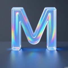 A glowing "M" formed by intertwined neon tubes, filled with a translucent gradient from electric lime to deep indigo. The base shadow mimics a levitation effect on a charcoal-gray surface.