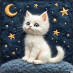 blue eyes, sitting, star \(symbol\), no humans, animal, moon, cat, crescent, realistic, animal focus