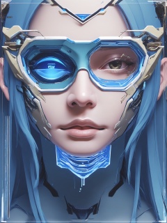 SBPK, A close-up portrait of a cybernetically augmented woman with biomechanical facial tattoos inside a pulsating magenta frame. Her mechanical eye glows cobalt blue against a rain-soaked alleyway backdrop filled with flickering holographic advertisements.