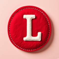MZTB, Photograph of a circular, deep red felt logo with a white, embroidered letter "L" in a classic, serif font. The logo has a smooth, slightly textured surface and is bordered with white thread. The background is a light pinkish-beige. The image is crisply lit, emphasizing the logo's traditional feel and the quality of the felt. The logo is centered in the composition, with a subtle shadow beneath it, creating a sense of elegance. The style is simple and timeless, focusing on the logo's design and tactile quality.
