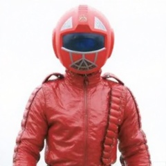 looking at viewer,kosei,cover,gun,armor,red theme,red gloves,bodysuit,logo,weapon,helmet