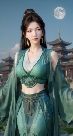 BREAK, (looking at viewer:1.39), chinese clothes,(green dress:1.36), (lace:1.28),