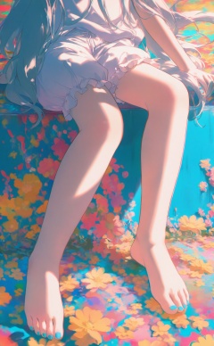 masterpiece,very aware,highres,absurdres,newest,best quality,loli,petite,high quality,chromatic_aberration,//,illustration,ultra detailed,hdr,Depth of field,(colorful),Yellow flowers,Blue wall,Closed windows,1girl,nail_polish,toenail_polish,barefoot,blue_nails,toenails,bloomers,solo,aqua_nails,feet,sitting,long_hair,linen hair,bare legs,barefoot,bare legs,sit on the ground,//,<lora:konya_karasue——【noob】hans:0.8>,