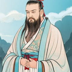 masterpiece, traditional_media, best quality, realistic, extremely detailed CG , 1boy,beard,hanfu, long sleeves, portrait,  solo,  ribbon, cloud,  sky ,<lora:xuanxue_v2.0:0.55>,handsome
