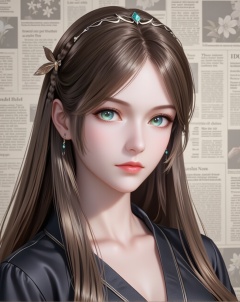 <lora:宁荣荣·百搭版5:1>,ningrongrong,1girl,solo,long hair,hair ornament,lips,closed mouth,brown hair,braid,blue eyes,green eyes,looking at viewer,cover,gradient background,close-up details,outstanding style,adding a touch of dimension to your images without compromising details,close-up,<lora:DJ滤镜_2.5D版:0.4>,lvjing,<lora:油画唯美滤镜15:0.2>,baoshi,<lora:报纸背景·5:0.4>,baozhi,paper,newspaper,the newspaper wall,newspaper background,