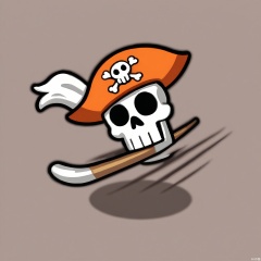 MBDJ, A digital drawing of a pirate's flag with a skull and crossbones emblem, flying from a plain white mast. The flag has a tattered appearance and flutters in an imaginary wind. The style is cartoony and rebellious, with bold colors and a dynamic design. A shadow under the flag suggests a light source from the side.