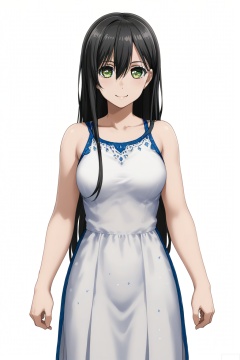 looking at viewer,Hanazono Tae,long hair,smile, bangs,black hair,hair between eyes, green eyes
