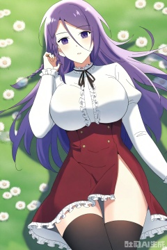 Thigh exposed,thighhighs,looking at viewer,in a meadow,in a meadow,
