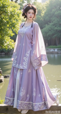 (masterpiece,best quality:1.23),Long - legged and enchanting beauty in a purple long gown with a fairy - like glow, against a background of a quiet bamboo forest in the morning mist,(huge breasts, full breasts:2.98),Xhanfududou,Xsongzhihanfu,Xlujiajia,Xyanqingfei,XfuqingyunY,Xtangqixiongshanqun,Xfeitianhanfu,Xqinghannu,XmeijiX2,XmeijiX