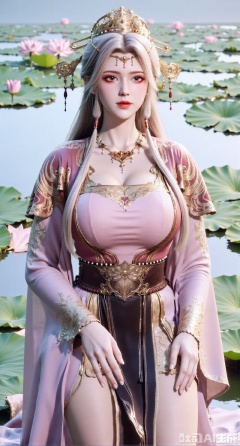(masterpiece, best quality:1.2),1girl, navel, solo, midriff, bare shoulders, hair ornament, flower, hair flower, long white hair, red lips,BREAK, (looking at viewer:1.39), chinese clothes,(Holographic dress:1.39), (lace,Rainbow Gradient Color:1.29),BREAK,purple eyes,blurry, solo focus, long hair, lips, daytime, lipstick, outdoors, (upper body,,Long legs:1.29), blurry,(huge breasts,full breasts:1.41), background, 1girl, makeup, hair bun,Xyunxiao,(Blue sky:1.39),(Suzhou Garden Lotus Pond,pink lotus,green Lotus Leaf:1.39),(huge breasts:2.99), (full breasts:2.99),,,XyunxiaoYK,Xsonghanfu,XlingyuyxiuX,XlingyuyxiuX2,Xqinghannu,Xtangqixiongshanqun