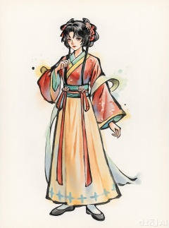 Render the body and clothing with a translucent, soaked-pigment effect.