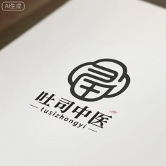 该图像具有带有程式化设计的徽标,其中包括汉字和符号的组合。这些字符用现代的,serif字体写成,汉字:"吐司中医"符号是一种黑色,抽象的设计,类似于风格化的面孔或口罩。在符号下方,文字用英语读取“ tusizhongyi”。背景是浅色的浅色表面,为徽标提供了干净,简约的背景。