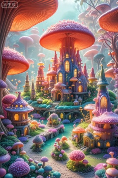 这张照片犹如梦境一般,展现了一幅奇幻的森林景观,森林中,五颜六色的蘑菇如同点点繁星,装饰着各式各样的建筑和结构,仿佛置身于童话世界,前景中,一座精巧而复杂的蘑菇城堡巍然耸立,周围环绕着较小却同样精致的建筑和翠绿的植物,地面覆盖着斑斓的蘑菇球和多彩的植被,犹如一个微型的童话王国,每一座蘑菇建筑都独具特色,散发着无尽的魅力,城堡宛如精灵的住所,屋顶由巨大的红色蘑菇组成,闪烁着迷人的光芒,墙壁则用各种颜色的蘑菇精心堆砌而成,窗户由透明的蘑菇薄膜覆盖,透出温暖的光亮,周围的较小建筑有的如同蘑菇亭子,有的形似蘑菇小屋,还有一些由蘑菇搭建的桥梁,整个蘑菇王国井井有条,充满生机,森林中的蘑菇小屋和城堡错落有致,小径两旁蘑菇球和植物竞相绽放,阳光透过树叶洒下,在地面闪烁着斑斓的光芒,蘑菇球大小不一,表面覆盖着细腻的绒毛,如同柔软的绒球,整个场景仿佛是一个令人沉醉的童话世界,让人忘却现实的烦恼,沉浸在美好与宁静之中,。,蘑菇童话