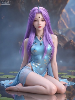 score_9,score_8_up,score_7_up,1girl,solo,looking_at_viewer,realistic,photorealistic,1girl,Vivid Colors,bright environment,shiny skin,detail eyes,Eyes highlights,extreme detail description,(full body:0.8),light,sunshine,bright,reflection,bright,sunshine on face,shiny,shinny,petite,thin,leg slimming,lose weight,slim hips,lakeside,delicate water,reflection,specular reflection,sitting_down,bracelet,purple-hair,white chinese_clothes,forehead jewel,circlet,necklace,