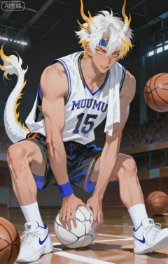 Small note art style,,xiaozhitiao,yu xuan,multicolored hair,White dragon tail,White dragon horns,yellow eyes,white hair,blonde hair,1boy,bangs