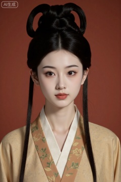 Photo of a beautiful woman from the Wei, Jin, Southern and Northern Dynasties, ancient style, high bun, Wei and Jin period, gorgeous clothing, solid color background, facial close-up, realistic, lens halo, large light circle, clean image, minimalism, plenty of white space, masterpiece, award-winning work