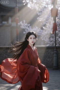 Blurriness, hazy aesthetics, global hazy blur blur blur, fashion, Warring States women, cool and gentle, red robe, flying cuff, sense of destiny, atmosphere, under the ancient city gate, ancient style, overhead perspective, professional lens, master level photography, film and television composition, characters like cherry blossom trees, clothing and accessories complex, cumbersome, high-quality, abstract, multiple, crazy, out of control, blank, faintly blurred portrait blur, messy and prominent hair and ribbons, dynamic blur, edge blur, black and white, gray, dark, multiple exposures, defocusing, ultra wide angle, strong perspective, depth of field, high noise, strong film graininess, dynamic aesthetics, diffuse blur blending, hazy aesthetics, exaggeration Composition, surreal, vivid and perfect details, masterpiece