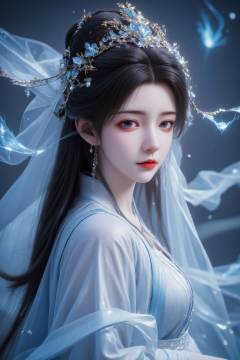 Cinematic photo a photograph of a woman with fair skin and long black hair,blue and white hanfu, <lora:AgainAnimeGirlF1Lora10_v2:1>
