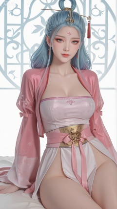 SN clothes, solo, exquisite skin, sitting, cowboy_shot, looking at viewer, even illumination, very awa, Solid Blue and white aperture