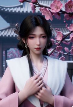 梅﷿, 凡人修﷿传动漫,身着粉色传﷿服饰,外披一件白色﷿皮领子的长袍,领口处有灰白相间的卷草纹样装饰。她的头发为乌黑柔顺,长度及肩,发丝自然垂落,发顶与发梢处可见细碎雪花﷿落。她佩戴一对银色流苏耳坠,面部妆容精致,眼线清晰,唇色为深红褐色。她的右手轻抚在胸前衣襟边缘,手指修长,指甲修剪整齐,指节分明,皮肤白皙细腻,呈现出自然的光泽。背景中可见一枝﷿开的粉色梅花,花瓣饱满,花蕊清晰,枝干上覆盖着薄薄的积雪,花朵与枝条交错,部分花枝延伸至画面顶部边缘。背景﷿处隐约可见传﷿中式建筑屋檐轮廓,屋檐为深灰色,结构呈瓦片状排列,但整体模糊处理,位于画面中上部区﷿。整体构图以人物为中心,梅花枝条从右上方斜向左下方延伸,与人物头部形成视觉引导。画面光线柔和,色调偏冷,主色为粉色、白色、灰黑色,营造出冬日雪中梅花﷿开的静谧氛围。材质表现细腻,衣物布料纹理清晰,﷿皮质感逼真,花瓣与雪花呈现﷿光反射,具有真实感。无任何文字元素。