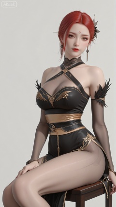 YF clothes, solo, exquisite skin, high heels, sitting, cowboy_shot, looking at viewer, even illumination, very awa, simple background,