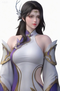 score_9_up,1girl, solo, long hair, simple background, black hair, hair ornament, white background, dress, bare shoulders, upper body,XuanYi